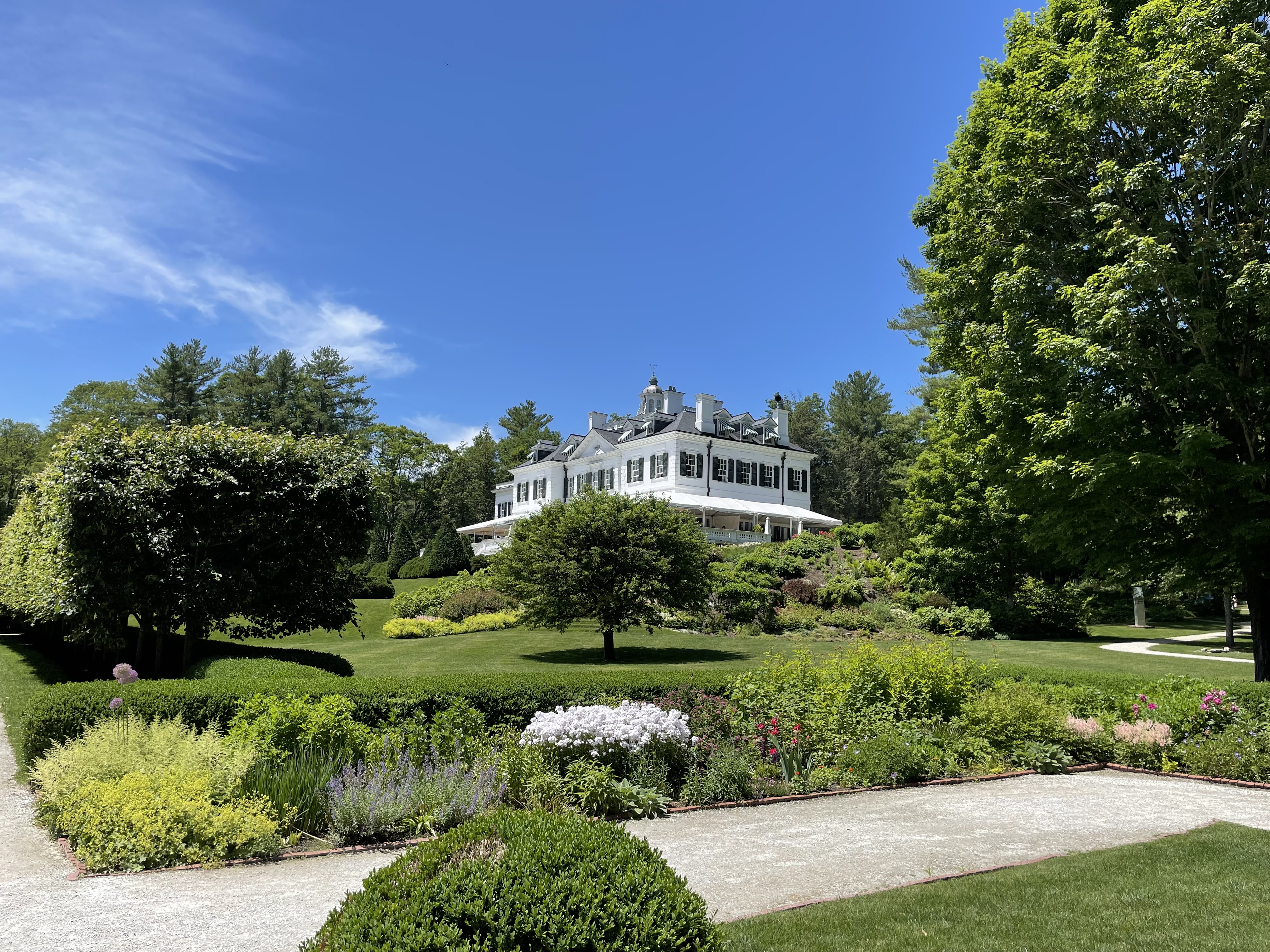 Edith Wharton's beloved home in is restored glory, as seen from its lush gardens.